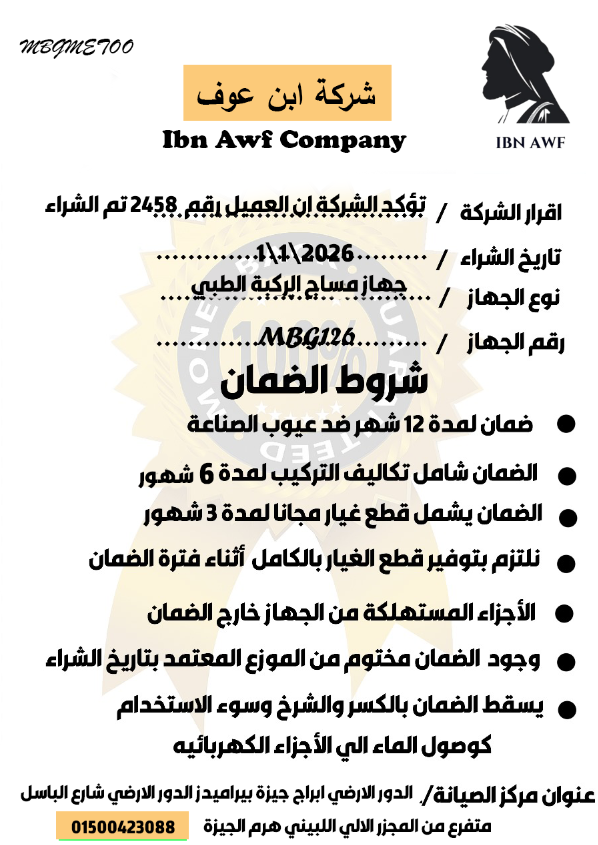 شركة ابن عوف لانها مهتمة بمصلحة عملائها ينوفرلك شهادة ضمانه فعليه ساريه لمدة سنة كاملة